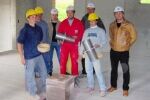 (v.l. Lehrling Emanuel, Johann Topf, Wolfgang Teuschl, Gerhard Janisch Fa. Ahrens, Polier Sepp, Lehrling Jürgen und Andreas Müller FG der Initiativehandwerk)