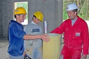 Ahrens Schornsteintechnik schult Lehrlinge im Kaminbau.