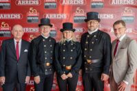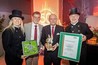 Ein besonderes Highlight der Veranstaltung war die feierliche Übergabe des Heiligen Florian und einer Ehrenurkunde der Bundesinnung durch Christian Plesar an Mathias Ahrens und Edmund Drohojowski – eine Anerkennung für das jahrzehntelange Engagement im Handwerk. Außerdem kam eine Abordnung der Innung der NÖ Rauchfangkehrer mit der feierlichen Fahne und in schwarzer Zunft, was Ahrens besonders freute. Im Rahmen der Feierlichkeiten überreichte Mathias Ahrens zudem Ehrenurkunden an Betriebsstättenleiter, um deren langjährige Treue und Engagement in den Betriebsstätten Wieselburg, Graz, Achau und Hallein zu würdigen. Diese Auszeichnung wurde von den Anwesenden mit großem Applaus gewürdigt.