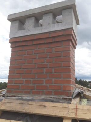 Zuerst wurde vom 3-zügigen Kamin der gesamte, kaputte Kaminkopf sauber abgetragen. Danach wurde der Korpus des Kaminkopfes von den AHRENS Facharbeitern mit NF Ziegeln gänzlich neu aufgemauert. Das passende Betonelement wurde bereits zuvor bei AHRENS gefertigt und dann vor Ort auf der Baustelle in Bad Vöslau mittels Kran auf den Ziegel-Korpus aufgesetzt. Doch nicht das äußerliche Erscheinungsbild ist bei einer Kaminsanierung das wichtigste – auf die inneren Werte kommt es an. Deshalb wurde der Kamin ausgefräst und ein neues Edelstahlrohr eingezogen, so kann der Rauchfang wieder effizient und sicher betrieben werden. Schließlich dient die neue Abgasanlage zum Betrieb einer Biomasse Zentralheizung, die nun wieder über einen funktionierenden Kamin verfügt.