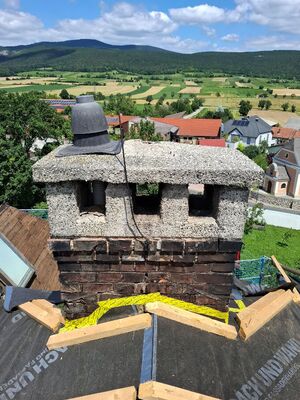 Beim bestehenden Rauchfang handelte es sich um einen Kaminkopf, dessen oberster Teil aus einem massiven Betonelement mit seitlichen Öffnungen bestand und diesen galt es originalgetrau wiederherzustellen.