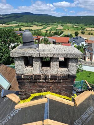 Bei einem Einfamilienhaus in Bad Vöslau war der Kaminkopf aufgrund seines Alters in desolatem Zustand. Zur umfassenden und fachgerechten Sanierung beauftragen die Eigentümer AHRENS. Unter der Leitung von Andreas Scharner, Außendiensttechniker für Kaminsanierung von der Betriebsstätte Achau, wurde der Kaminkopf rundum erneuert.