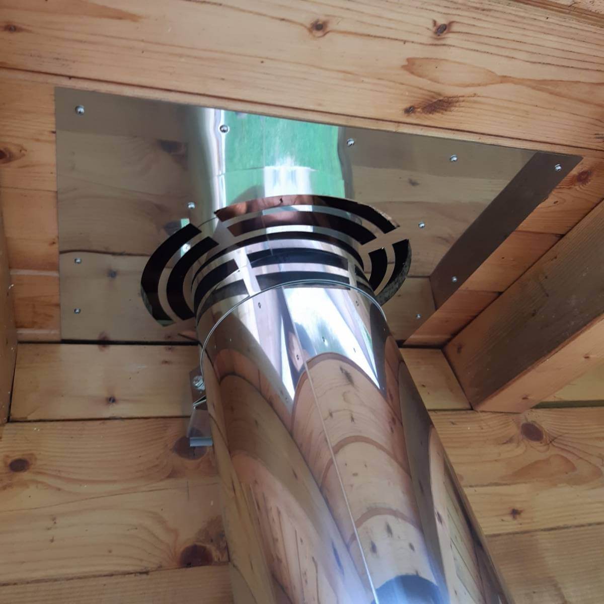 Beim AHRENS Kompakt opti handelt es sich um einen doppelwandigen Edelstahlkamin der für alle Regelfeuerstätten im Unterdruck geeignet ist und auch preislich bei den Kunden gut ankommt. Für die Holzhütte wurde ein Kompakt opti mit einem Durchmesser von 150mm gewählt, der alle Vorzüge der Kompakt-Kaminfamilie in sich vereint: die Dämmung sorgt für schnelle Aufheizung, das funktionale Design aus Edelstahl passt sich in vielen Architektur-Konzepten ein und natürlich ist man mit einem Edelstahlkamin auch unabhängig in punkto Heizart.