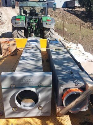 Für Gerhard Janisch war bei der Besichtigung schnell klar, dass sich als Abgasanlage für die 170 kW Hackgutanlage, die sowohl das Wohn- als auch das Wirtschaftsgebäude effizient und umweltfreundlich mit Wärme versorgt, das System AHRENS S 25 Fertigteilkamin am besten eignet.