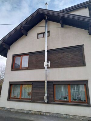 Das Neubau Kaminsystem wurde beim Einfamilienhaus im Mölltal vor Ort installiert - im Bereich der Wanddurchführung verbauten die Techniker ein DWD Schott. Zudem wurden die Dachdurchführung, inklusive Dacheinfassung, sowie eine Wandkonsole im unteren Bereich des Kamins umgesetzt. Der AHRENS Kompakt opti wurde außerdem mit einem Edelstahl-Dachl ergänzt, das vor Witterungseinflüssen schützt. Die Abgasanlage sorgt nicht nur für die nötige Sicherheit beim Heizen, sondern ist auch eine optisch stimmige Ergänzung des Hauses.