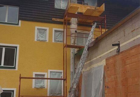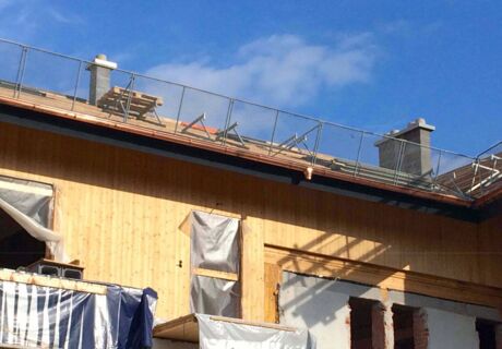 Bei der Sanierung des Mehrfamilienhauses in Scheffau war die Aufgabe für Alexander Cernik bzw. das Technik-Team von AHRENS den bestehenden Kamin zu demontieren und durch einen Edelstahlkamin DW ECO mit DM 16 zu ersetzen. Auch dieser hatte eine stattliche Höhe von 12 Metern.