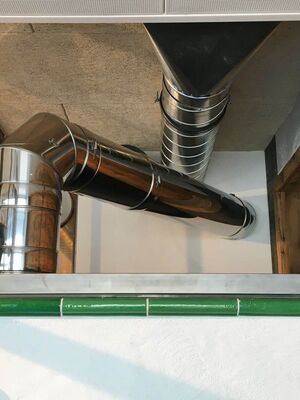Dabei wurde zur Sanierung ein doppelwandiges Edelstahlkaminsystem AHRENS Kompakt als Zuleitung verwendet – diese führt direkt in den Kamin zum Backofen. Das Kaminsystem wurde eigens adaptiert, denn es galt einen besonderen Kundenwunsch vom Bäckermeister zu berücksichtigen: Der moderne Brotbackofen reicht nämlich bis in den Kundenbereich und sieht aus wie ein Kachelofen. So sorgt er optisch für ein traditionelles Flair in der Stube und arbeitet technisch trotzdem auf höchstem Niveau.