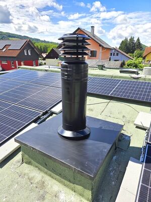 Das System wurde in enger Zusammenarbeit und Rücksprache mit dem zuständigen Rauchfangkehrer Kazarov in den Dachaufbau eingebunden.
