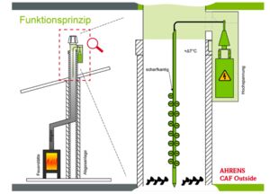 Im Fokus des CAF-Konzepts steht der Einsatz eines hochmodernen Systems und optimierter Schornsteintechnik, die speziell darauf ausgerichtet ist, Emissionen von Festbrennstoff-Feuerstätten signifikant zu senken. Dank des einzigartigen Systems von AHRENS wird der Ausstoß von Feinstaub erheblich reduziert (Abscheidegrad 70 bis 90 %). Dadurch trägt das CAF-System maßgeblich zur Verbesserung der Luftqualität und zur Senkung der CO₂-Belastung bei.