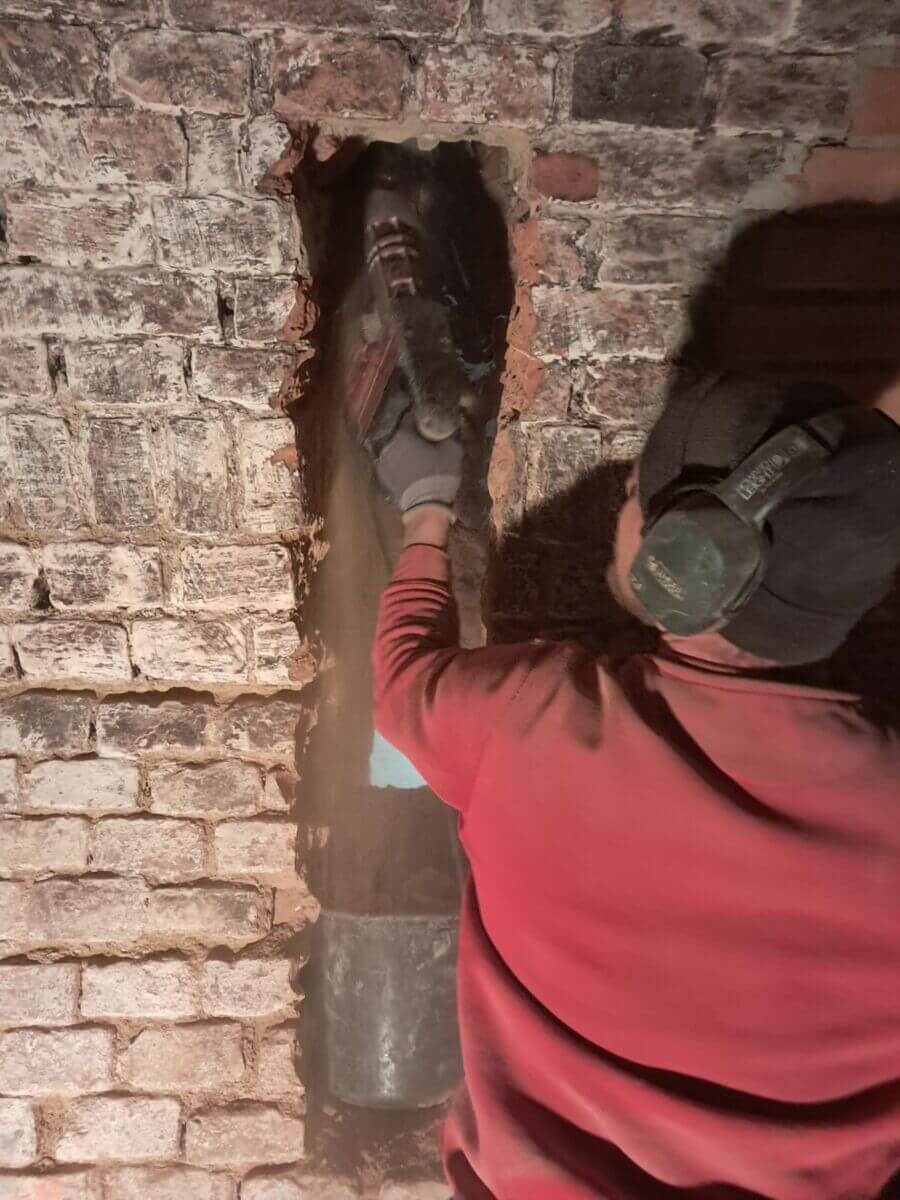 Unter der Leitung von Daniel Gruber, Außendiensttechniker von der AHRENS Betriebsstätte Achau, wurden die nötigen Arbeiten geplant und umgesetzt. Der bestehende Kamin musste vom Erdgeschoss bis in den Keller verlängert werden und einer umfassenden Sanierung unterzogen werden. Die Arbeiten umfassten komplexe Stemmarbeiten durch ein zwei Meter tiefes historisches Gewölbe, die von den Fachkräften präzise und effizient ausgeführt wurden. Über jeweils 25 Meter wurden Fräs-, Schleif- und Rohreinzugarbeiten notwendig, um die neuen Anforderungen an die technische Infrastruktur optimal zu erfüllen. Die Innenauskleidung des Kamins erfolgte in bewährter AHRENS Top-Qualität mit hochwertigem Edelstahlrohren (starre und flexible Ausführung) und garantiert höchste Sicherheit sowie Langlebigkeit.