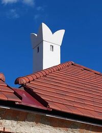 Daher wurden beide Kaminköpfe genauestens vermessen und bauseits abgetragen, bevor ein Baumeister ein Fundament herstellte. Die beiden Fänge wurden neu, aber originalgetreu, aufgemauert und innen mit Edelstahlrohren (DM 20 cm) verkleidet, bevor sie fertig verputzt wurden.