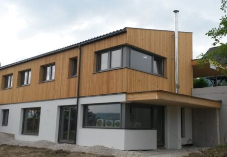 Dieses System punktet nicht nur mit seiner besonders kurzen Installationszeit, sondern auch mit seiner Optik, die hier perfekt mit der Holzriegel-Bauweise harmoniert. Design und Technik vereinen sich hier aus Gesamtkonzept.