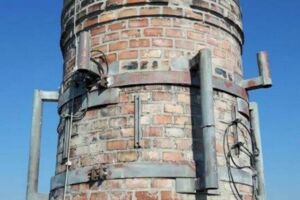 Und so wurde in Millimeterarbeit der Hubsteiger in den Hof gefahren, die Instandsetzungsarbeiten im oberen Bereich durchgeführt, der Betonkranz erneuert und alles neu verfugt. Eine gelungene Detailarbeit, die dafür sorgt, dass ein Stück Geschichte erhalten bleibt und vor allem die Sicherheit der Mitarbeiter am Gelände gewährleistet wird.