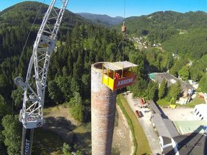 Im Zuge der kommenden NÖ Landesausstellung 2015 wurden rund 100 Unternehmen, 75 davon aus dem Mostviertel damit beauftragt, Hallen, Töpperschloss und Töpperkapelle für die NÖ Landesschau, die unter dem Motto: „ÖTSCHER:REICH – Die Alpen und wir“ stattfindet, zu sanieren. Mehr als 2 Jahre lang wurde der Umbau des Töpperareals in Neubruck geplant. Das in Wieselburg ansässige Unternehmen Ahrens Schornsteintechnik hat die spektakuläre und verantwortungsvolle Aufgabe bekommen, das Wahrzeichen des Töpperareals, den weiterhin sichtbaren 78 m hohen Fabrikschlot, zu sanieren.
