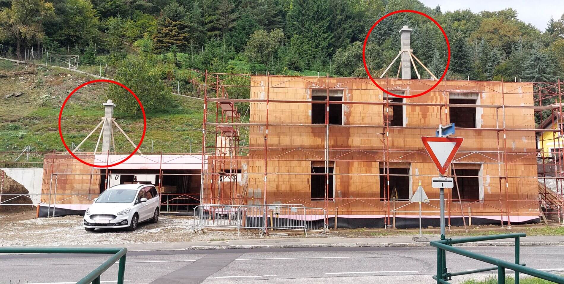 Bild: AHRENS Abgassysteme mit Abstützung bis zur Versetzung des Dachstuhles.