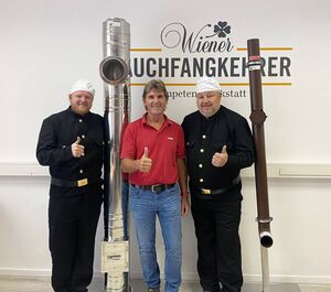 Um die Kompetenzwerkstatt in ihrer Funktion als Fortbildungsorgan bestmöglich zu unterstützen, sponserte AHRENS verschiedene Produkte zur Durchführung praktischer Ausbildungsschwerpunkte. Außendienstmitarbeiter Leopold Racher (Betriebsstätte Wien) freute sich, die Produkte AHRENS Kompakt und AHRENS Technaflon an die Kompetenzwerkstatt zu übergeben. Rauchfangkehrermeister Gerhard Urbanides, Vorsteher der Genossenschaft EWG der Wiener Rauchfangkehrer, und sein Stellvertreter Rauchfangkehrermeister Pascal Gehrken nahmen die Unterstützung durch das Produkt-Sponsoring von AHRENS persönlich dankend entgegen.