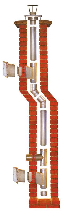 Das einwandige Schornsteinsystem dient zur Querschnittsverminderung von Schornsteinen zur Anpassung an moderne Öl-, Gas- oder Festbrennstoff-Feuerstätten.