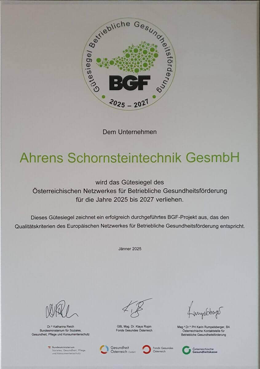 Ahrens Schornsteintechnik GesmbH ist in der Liste der für öffentliche Auftraggeber geeigneten bzw. qualifizierten Unternehmer geführt.